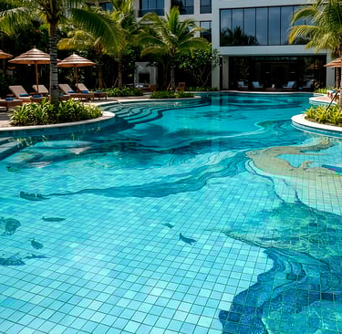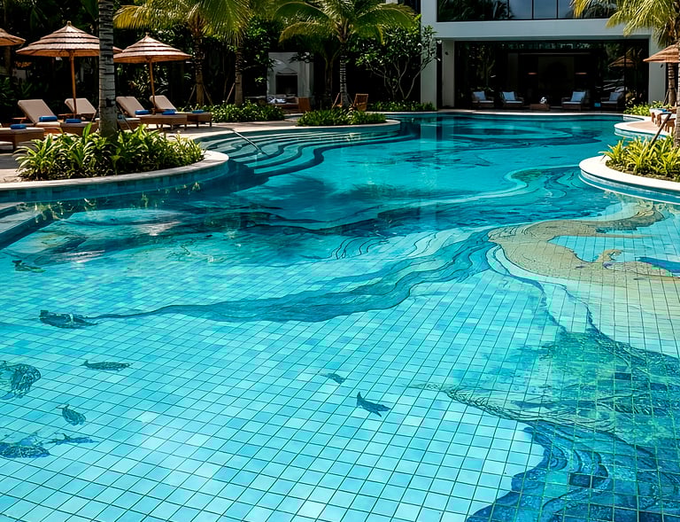 Piscinas con revestimientos cerámicos hechos a medida, combinando funcionalidad y estética cálida.